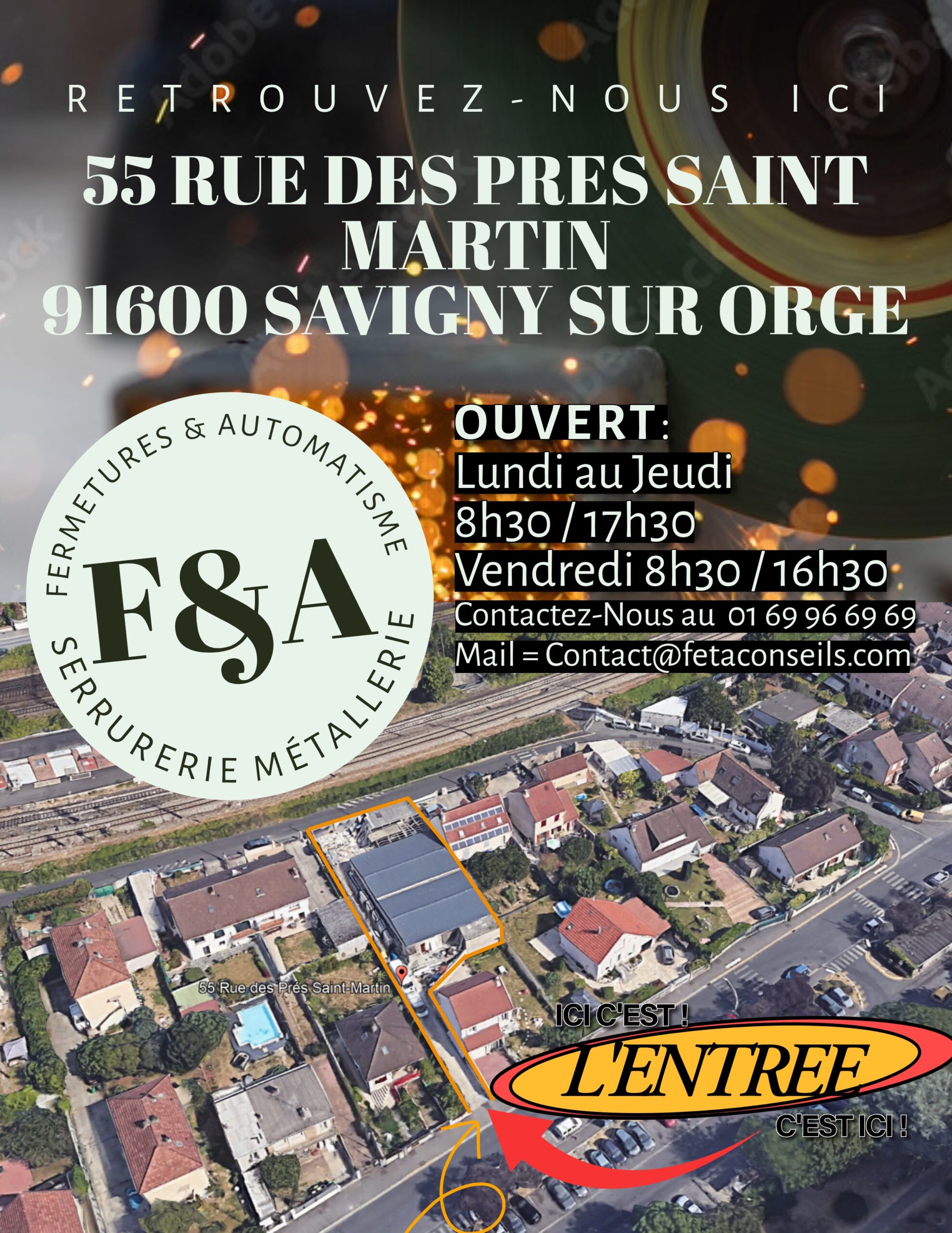 En 2019, nous avons déménagé nos locaux vers Savigny-sur-Orge, au 55 Rue des Prés Saint Martin, 91600 Savigny-sur-Orge. Ce nouvel emplacement nous a permis d’optimiser nos services et de continuer à vous offrir des solutions de qualité dans un cadre moderne et adapté.